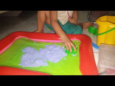 Hari ini zee ikut ke kantor saya, dan seperti biasa saya bekali dia dengan mainan pasir kinetiknya.